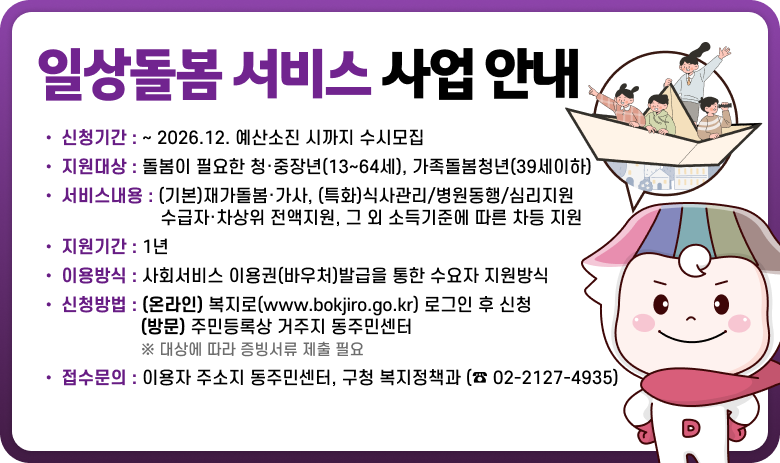 동대문구청 복지정책과 02-2127-4935 또는 거주지 동주민센터